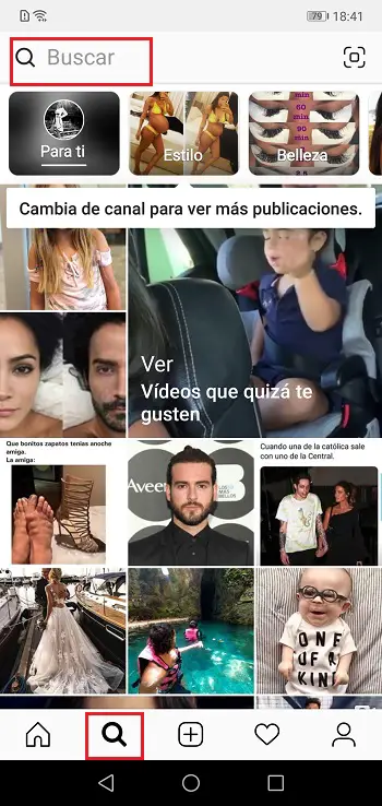 La deuxième option que vous avez est d’entrer dans la section «Explorer». Cette section vous montre des posts de photos et de vidéos en fonction de vos goûts, de votre localisation et aussi en fonction des followers des personnes que vous suivez et des likes qu’elles donnent. Pour cette raison, il est possible que si la personne que vous recherchez partage un abonné en commun avec vous, vous pouvez trouver l’une de ses publications récentes dans ce domaine.