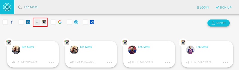Après cela, vous verrez une large liste d’utilisateurs du même nom qui sont sur différents réseaux sociaux, ce que vous devez faire est de réduire le rayon de recherche à Instagram, ce que vous pouvez faire en décochant toutes les cases qui se trouvent en haut de la page. écran , sauf celui du réseau social qui vous intéresse.