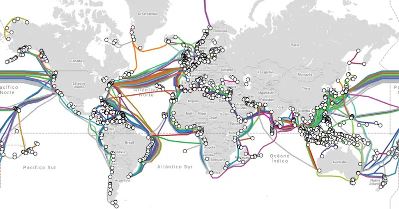 Il s’agit essentiellement d’ un réseau de câbles sous-marins à fibres optiques qui relient tous les continents du monde dans un immense réseau de communication . Ces câbles ont un revêtement spécial qui les maintient complètement isolés de l’eau et protégés contre la détérioration, bien qu’ils soient maintenus en permanence. Plus de 90% de ces câbles ont été installés par des entreprises privées dédiées au secteur des télécommunications.