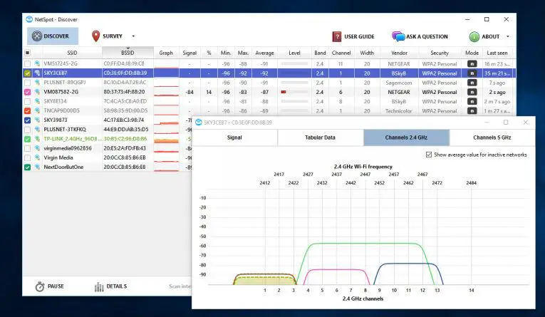 Il existe des outils qui effectuent une analyse de l’ensemble du spectre Wi-Fi et qui vous fournissent des détails sur le réseau auquel vous êtes connecté et l’état du canal que vous utilisez. Ainsi, vous pouvez déterminer s’il est nécessaire de changer de chaîne ou non. Une application compatible avec Windows et Mac est NetSpot . Il est très complet et propose même des fonctionnalités de niveau professionnel, il n’est pas nécessaire d’avoir trop de connaissances pour commencer à l’utiliser, il n’a aucun coût et il suffit de répondre à l’exigence de compatibilité. NetSpot est disponible à la fois pour Windows 7/8/10 et MacOS . Tout réseau Wi-Fi fonctionnant sous la norme 802.11 peut être détecté et analysé par l’application.