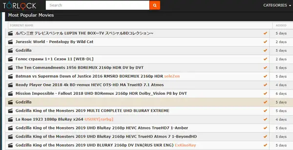 C’est une autre des alternatives que vous pouvez utiliser pour remplacer SkyTorrent , car il s’agit d’un site Web qui comprend une base de données sécurisée, exempte de virus et de qualité HD. Ainsi, vous pouvez être sûr qu’une fois le téléchargement terminé, vous pourrez visualiser son contenu sans aucun problème. Il convient de mentionner que, par rapport aux autres options de la liste, Torlock ne dispose pas d’une bibliothèque de fichiers aussi étendue .