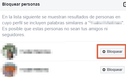- Cela affichera une liste de profils possibles qui correspondent à votre recherche, cliquez maintenant sur » Bloquer » à côté de l’image de la personne que vous souhaitez bloquer.