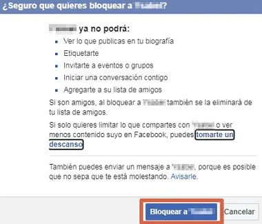 - Facebook vous demandera si vous voulez vraiment bloquer la personne. Si vous êtes d’accord, confirmez votre décision en appuyant sur «Bloquer pour…» .