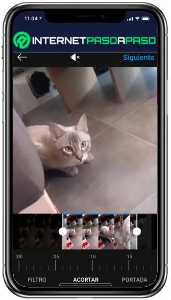 - Dans la section suivante, vous avez la possibilité de transformer votre image . Soit ajouter des filtres , couper la durée ou activer ou non le son (uniquement en vidéo). L’une des dernières mises à jour vous permet également de sélectionner l’image qui apparaîtra comme couverture (vidéo uniquement).
