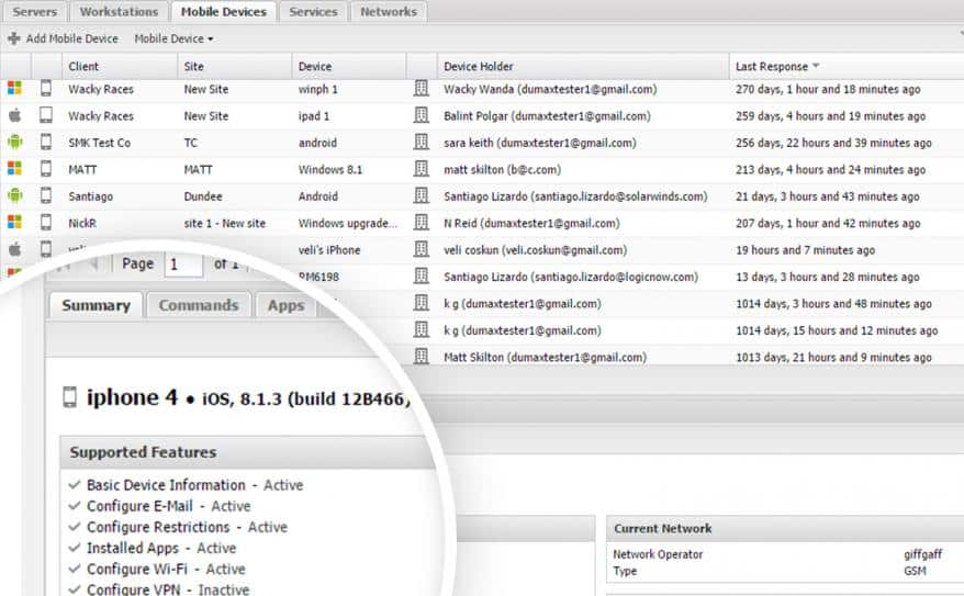 Quant à la fonction de gestion des appareils mobiles de l’outil, elle ne laisse rien à désirer. La surveillance et la gestion à distance SolarWinds vous permettent de gérer et de protéger facilement les appareils mobiles. La fonction MDM est évolutive, facile à configurer et facile à gérer. Il rend la gestion des appareils plus efficace tout en vous aidant à réduire les risques grâce à une configuration et une maintenance rapides et automatisées des appareils mobiles. En combinant la gestion des appareils mobiles avec les autres fonctionnalités de l’ outil de surveillance et de gestion à distance , vous pouvez facilement gérer plusieurs types d’appareils à partir d’une seule console Web.