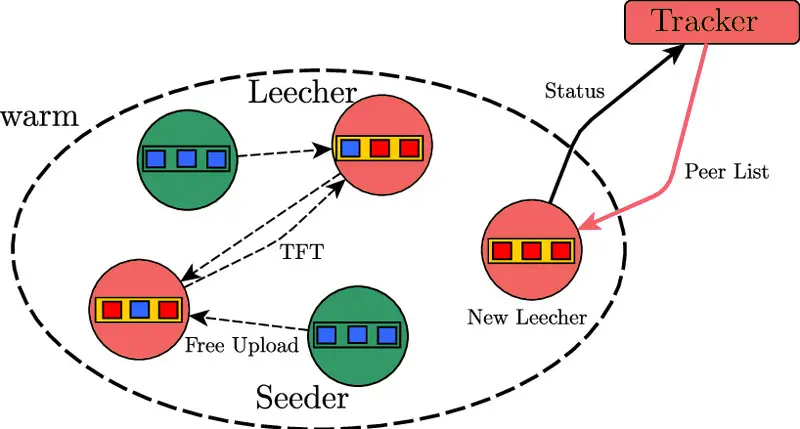 - Trackers : C’est le serveur (tracker) qui, même sans faire partie implicitement du processus de communication, permet la connexion de pairs. C’est avec cette ressource qu’il est possible de savoir à qui appartient le fichier.