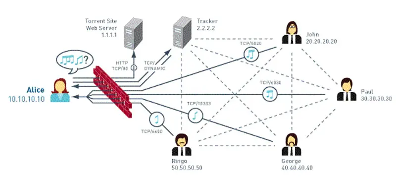 Un utilisateur, qui sera un client sur le réseau, fait une demande de contenu, les informations du torrent sont analysées pour savoir où se trouvent les morceaux de l’original et le reconstruire après le téléchargement.