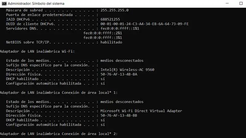 Ce qui nous intéresse dans ce cas, c’est de rechercher Microsoft Wi-Fi Direct Adapter. Si nous trouvons cette phrase parmi toutes les données qu’elle nous montre, cela signifie que notre ordinateur Windows 10 est compatible avec Wi-Fi Direct.