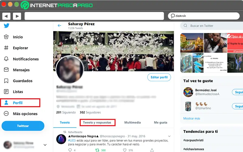 - Plus tard, comme dans le cas précédent, vous trouverez une série d’onglets disponibles en haut de vos tweets . Là, appuyez là où il est dit «Tweets et réponses» pour commencer à voir les commentaires des autres membres du réseau social.