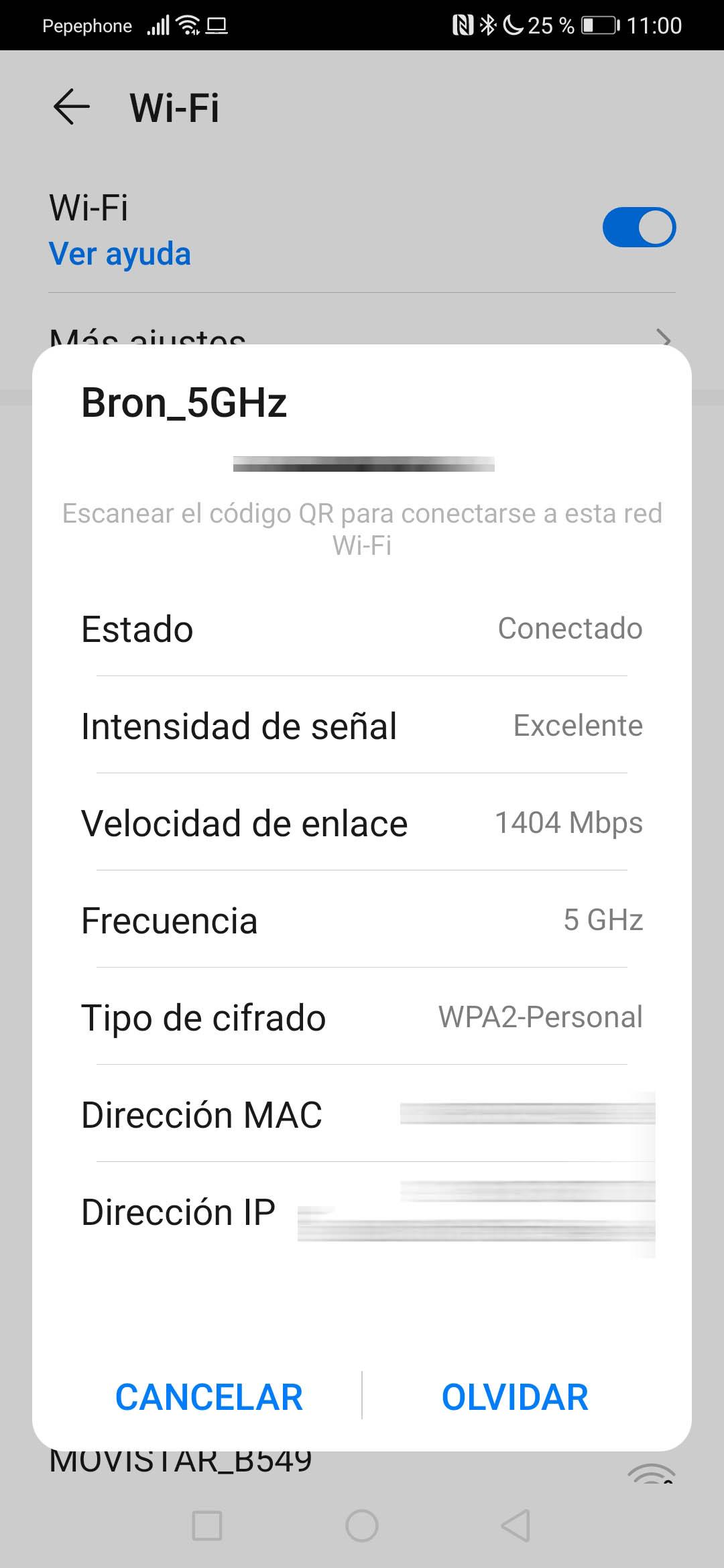 Comme vous pouvez le voir, les performances que nous obtiendrons (théoriques) sont le double de celles si nous utilisons 80MHz de largeur de canal, et cela se voit parfaitement avec les smartphones compatibles avec cette largeur de canal de 160MHz, comme notre Huawei P30.