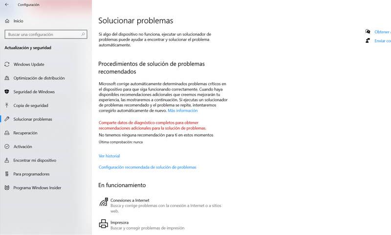 Quelque chose que nous avons à notre disposition est l’ utilitaire de résolution des problèmes Windows . C’est un outil qui nous permet de résoudre certains défauts qui peuvent se trouver dans notre réseau. Pour l’exécuter, nous devons aller dans Paramètres, entrer Mise à jour et sécurité et là pour Dépanner. Là, nous devons sélectionner l’adaptateur réseau.