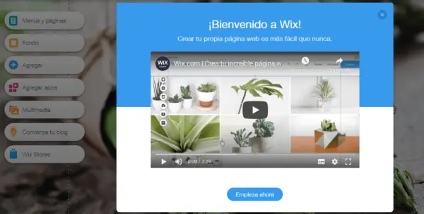 - L’étape suivante consiste à accéder à l’éditeur de page Wix . Cela fonctionne de manière simple grâce à un panneau d’outils situé à gauche de l’écran. Si c’est la première fois que vous accédez à cette section, Wix vous montrera une vidéo informative sur la façon de l’utilis