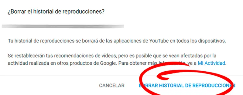 Lorsque nous sélectionnons cette option, une fenêtre pop-up apparaîtra nous demandant si nous voulons vraiment supprimer l’historique de lecture, avec une série d’avertissements sur les éléments que cela affectera sur notre compte YouTube. Si nous voulons supprimer l’historique, il suffit de confirmer en cliquant sur Supprimer l’historique de lecture .