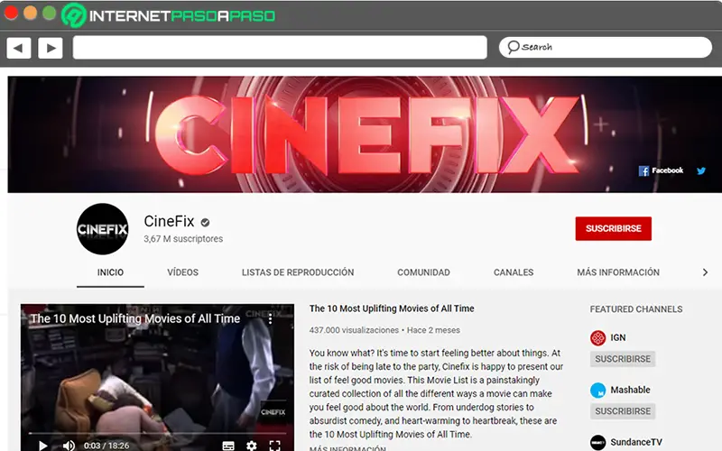 Une autre des options les plus intéressantes pour regarder des films de YouTube dans la meilleure définition possible est cette chaîne qui compte plus de trois millions d’utilisateurs enregistrés et, grâce à cela, elle est considérée comme l’une des meilleures alternatives pour profiter du septième art depuis n’importe quel appareil. et gratuitement. En tenant compte de cela, il fournit des listes des 10 films les plus émouvants, des 5 meilleurs génériques de fin et de nombreuses autres alternatives .