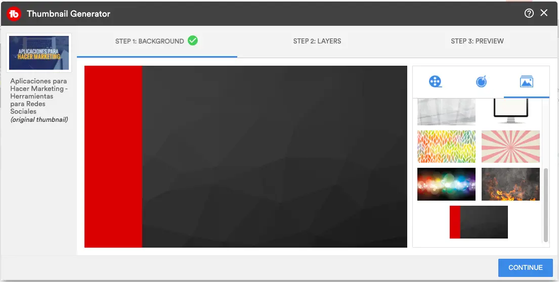 L’image montre une couleur de fond rouge-noir fournie par TubeBuddy où vous pouvez commencer à créer votre vignette.