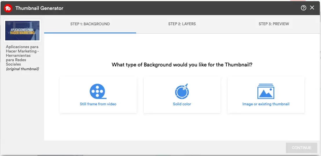 Avec l’outil TubeBuddy, vous pouvez créer des vignettes à partir de zéro, en commençant par une capture d’écran de votre vidéo, une couleur d’arrière-plan ou une image.