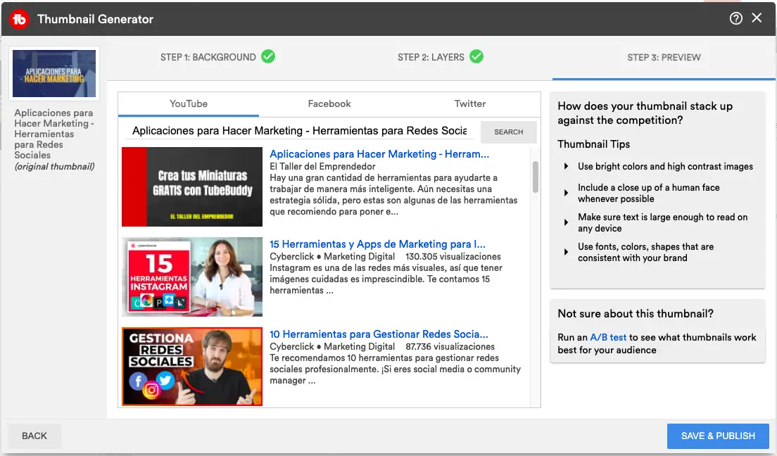 Enfin, TubeBuddy vous permettra de voir à quoi ressemblera votre vignette dans les résultats de recherche YouTube une fois qu’elle sera créée et publiée.