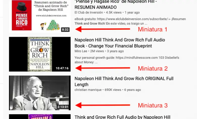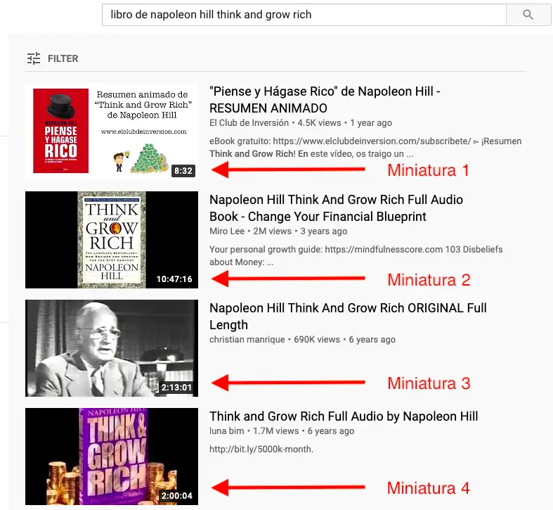 Dans l’image ci-dessus, nous pouvons voir 4 vidéos pour la même recherche sur YouTube et chacune a une vignette différente.
