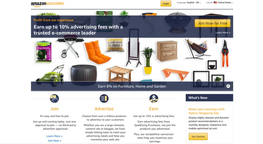 Cette image montre la plate-forme d’affiliation Amazon «Amazon Associates». Dans ce document, les affiliés peuvent promouvoir les produits du réseau Amazon en ligne pour gagner des commissions.