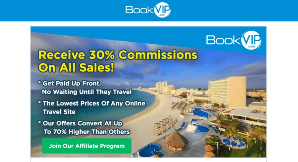 BookVip est un site internet qui propose des forfaits touristiques dans les stations balnéaires. De plus, il dispose d’une plate-forme d’affiliation qui permet aux gens de partout de gagner des commissions en faisant la promotion de leurs offres de villégiature.