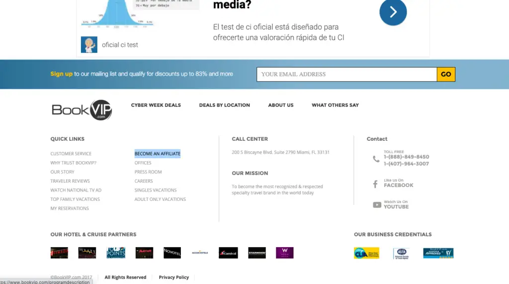 L’image montre la section affilié sur le site BookVip.com, qui se trouve en bas de la page. Généralement, les entreprises placent leurs sections affiliées dans ce secteur.