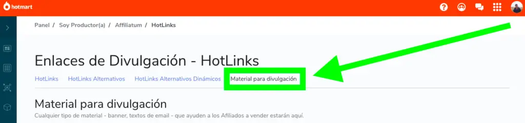 Dans cette partie, vous pouvez accéder à tout le matériel promotionnel que le créateur du produit a fourni aux affiliés, tels que: e – mails, images, etc.