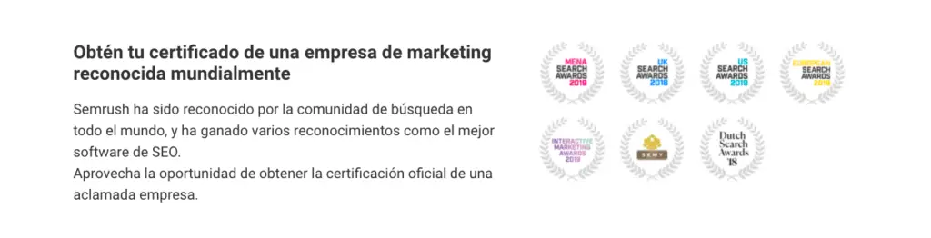SEMrush Academy propose une grande variété de cours d’espagnol gratuits et de haute qualité et vous récompense avec un certificat pour votre dur labeur…