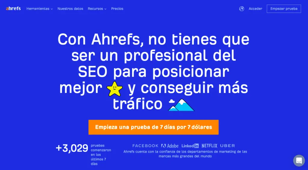 SEMrush est reconnu comme la meilleure suite SEO selon les US Search Awards de 2019. De nombreux experts l’appellent le meilleur outil de marketing et de référencement. Il est disponible en espagnol et vous pouvez l’essayer gratuitement.