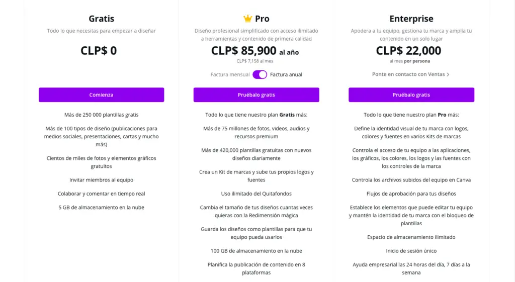 Vous pouvez utiliser Canva gratuitement. Mais le programme propose également 2 abonnements Premium: Pro et Enterprise.