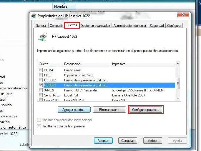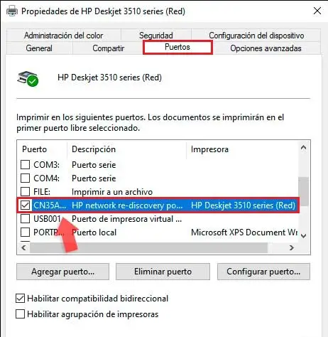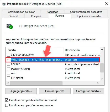 - Nous suivons les instructions qu’ils nous donnent et enfin nous pourrons connaître le type de port attribué aux périphériques de services Web, et dans la colonne de gauche, nous trouverons l’adresse MAC de l’imprimante.