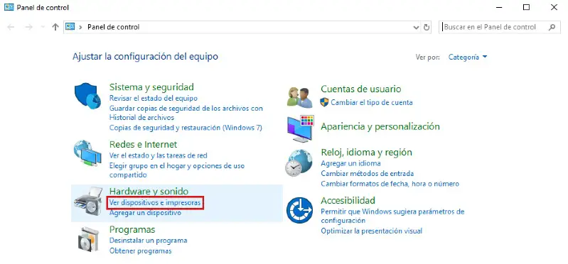 - Une fois que vous accédez à ces menus, vous verrez que voici tous les appareils que vous pouvez avoir ou avoir. Dans ce cas, vous devez aller dans «Imprimantes et scanners».