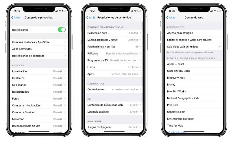 Les contrôles parentaux nous permettent de bloquer ou de restreindre certains accès aux pages Web de votre iPhone qui ne sont pas recommandées pour les enfants ou parce qu’à nos yeux, elles sont inappropriées; Eh bien, sur Internet, il y a du contenu violent, sexuel, terroriste, bref … beaucoup de sujets qui ne nous intéressent pas.