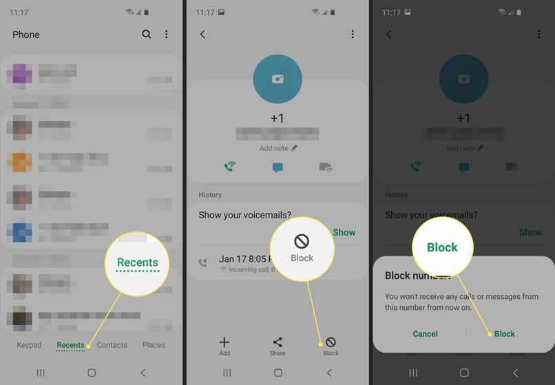 Si vous souhaitez bloquer un numéro mais que vous ne le connaissez pas, ou parce que c’est un numéro qui n’est pas affiché, vous pouvez utiliser une méthode différente de la première. Revenez simplement à l’ application «Téléphone» et accédez à «Récent» et recherchez le numéro à bloquer ou un appel récent que vous ne souhaitez pas voir se reproduire.