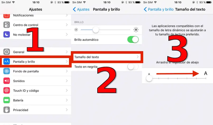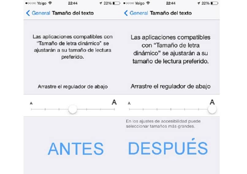 - Vous devez choisir «Texte plus grand» où plusieurs polices plus grandes vous seront présentées.