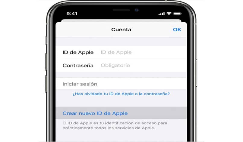 Vous devez maintenant aller à la fin des options et sélectionner « Connexion », puis choisir « Créer un nouvel identifiant Apple » pour le créer.