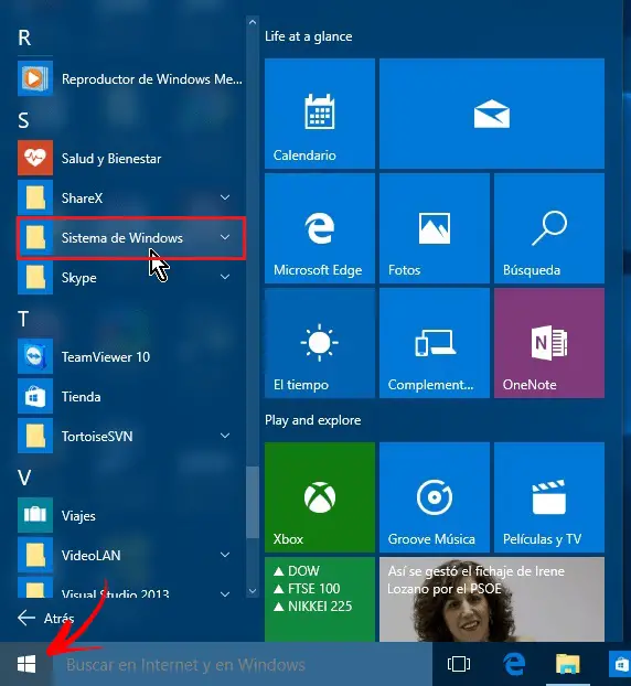 - La première chose à faire est d’ouvrir le «Menu»> «Système Windows».