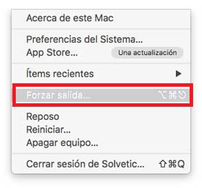 Une autre façon de forcer la sortie du système est d’aller dans le menu Apple et là vous recherchez et sélectionnez l’option «Forcer la sortie».