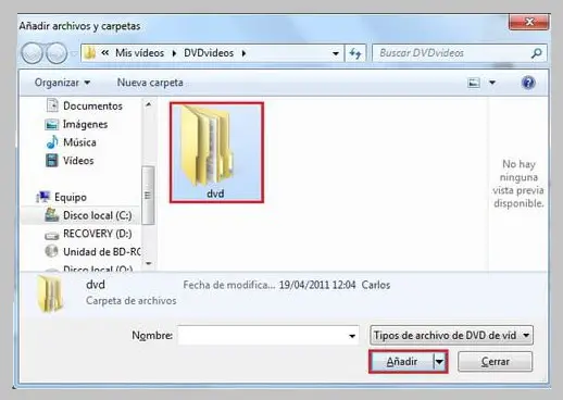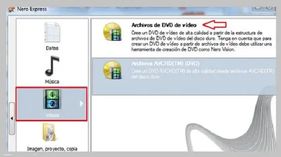 - Nous insérons le DVD dans le lecteur et démarrons le programme, sélectionnez » Vidéos» puis » Fichiers vidéo DVD «.