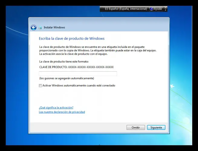 C’est le moment où beaucoup désespèrent et la vérité est que nous ne comprenons pas pourquoi. Eh bien, il nous demandera d’entrer la clé de produit, si nous ne l’avons pas, nous pouvons sauter cette étape . Pour activer Windows sans clé de produit, vous pouvez utiliser des correctifs ou également appelés activateurs.