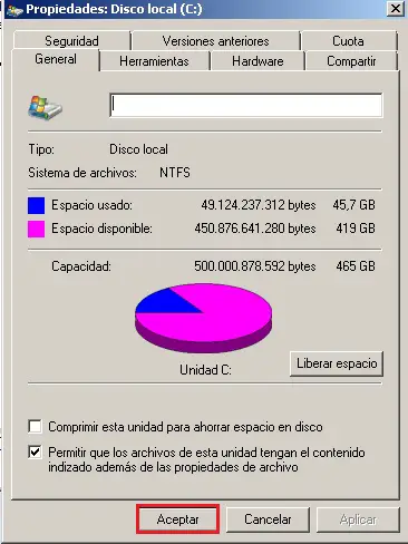 - Cliquer sur les propriétés ouvrira une fenêtre qui sera nommée propriétés du disque dur, vous verrez une option qui dit «libérer de l’espace», vous cliquez dessus pour continuer.