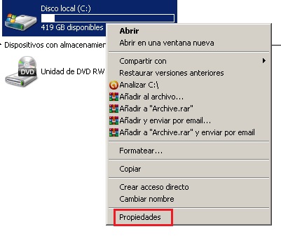 - Lorsque vous ouvrez le disque dur apparaîtra, vous devrez faire un clic droit dessus , parmi les options qui apparaîtront, vous trouverez «Propriétés».