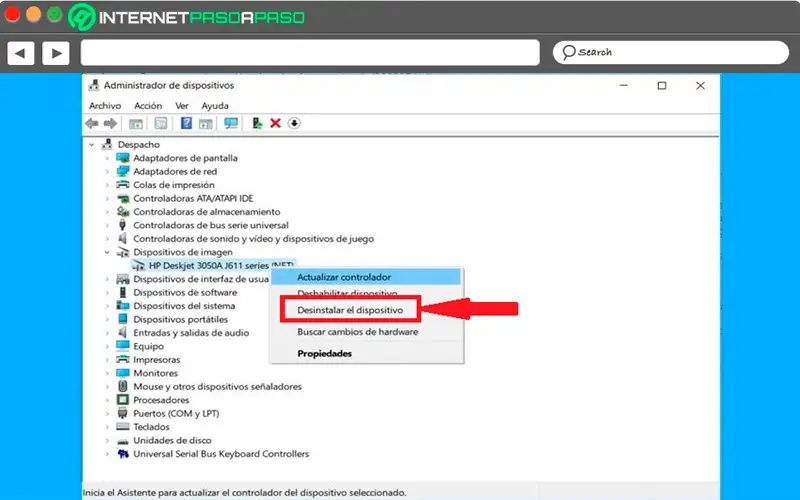 Une fois cette fenêtre chargée, vous pourrez voir tout le matériel de votre ordinateur, si l’un des éléments tombe en panne, il apparaîtra avec un signal de danger en jaune comme déjà mentionné dans le post. Si tel est le cas, faites un clic droit dessus et dans le menu déroulant qui y apparaît, sélectionnez «Désinstaller le pilote».