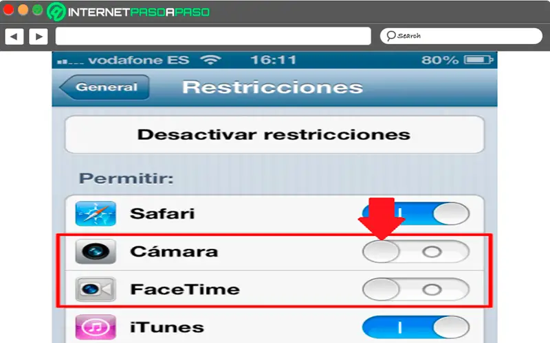 De cette manière et à travers ces étapes simples, vous pouvez désactiver complètement la fonction caméra de votre iPhone. Dans le cas où vous souhaiteriez le réactiver, il vous suffit d’effectuer les mêmes étapes déjà mentionnées et de remettre l’interrupteur sous tension. Enfin, vous devez garder à l’esprit que lorsque vous désactivez cette fonction, son icône sera supprimée à la fois sur l’écran d’accueil et sur l’écran de verrouillage , vous ne pourrez donc pas y accéder à nouveau sauf si vous l’activez à nouveau.