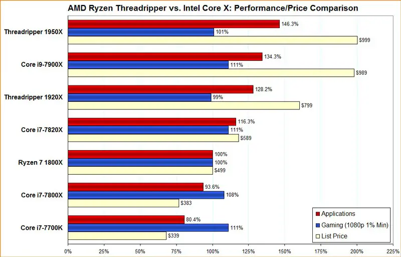 - Threadripper 1000 et 2000: ils sont meilleurs en termes de performances, de puissance et de prix.