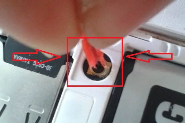 - La première chose à faire est d’ouvrir le capot arrière du Smartphone. Dans la partie où se trouve la sortie du signal , vous allez placer la pointe du fil.