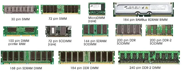 - Modules SIMM ou module de mémoire en ligne unique . Avec bus de données en 16 ou 32 bits. Pour les vieux ordinateurs.