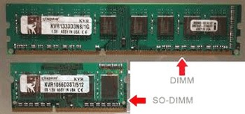 - SO-DIMM: la RAM utilisée dans les ordinateurs portables, est environ la moitié de la taille des gros ordinateurs et a généralement une tension plus basse, en plus de générer moins de chaleur et d’être plus chère.