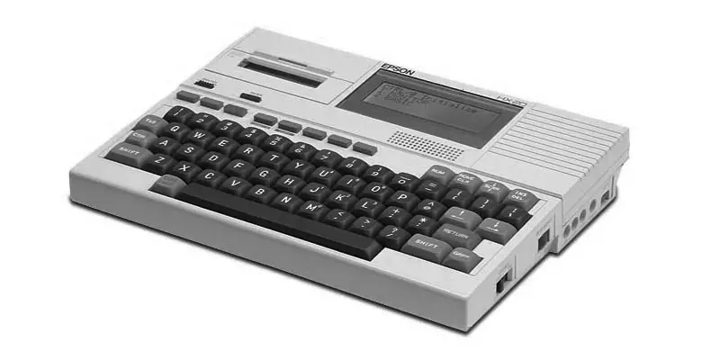 - Epson HX-20 : Il a été annoncé en 81 et lancé en 83. Il a une grande valeur pour les collectionneurs car, contrairement au précédent, ses caractéristiques le rendent beaucoup plus fonctionnel. Il avait un double processeur Hitachi 6301, une imprimante matriarcale, une RAM extensible, une microcassette pour le stockage des données et un écran LCD.