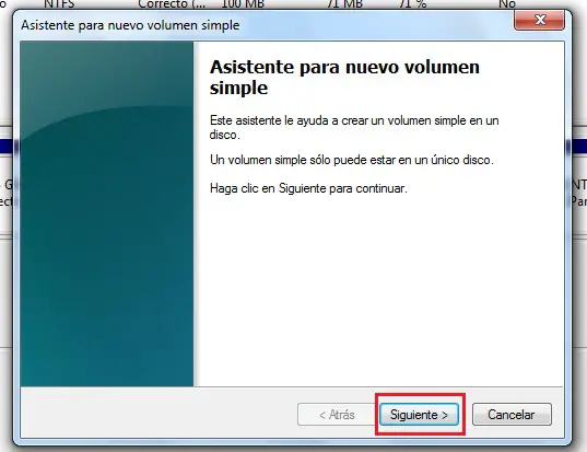 - Une nouvelle fenêtre apparaîtra «Assistant pour nouveau volume», dans cette partie il vous suffit d’appuyer sur «Suivant».
