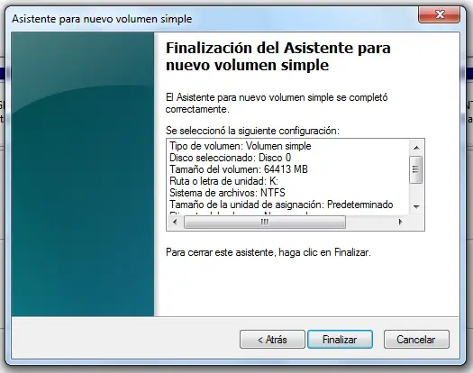 - Une fois cela fait, vous aurez terminé le processus et l’image suivante apparaîtra qui résumera la configuration de votre partition.